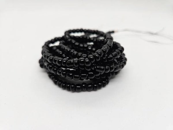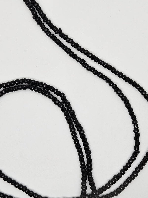 A simple strand of all black glass seed beads.