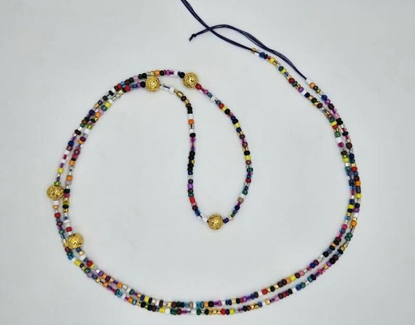 Our proprietary blend of multicolored beads, accentuated with gold tone lava stone.